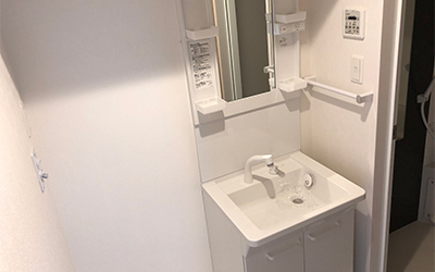 大きな鏡でパッと身支度ができる独立洗面台!収納スペースもばっちりあります!